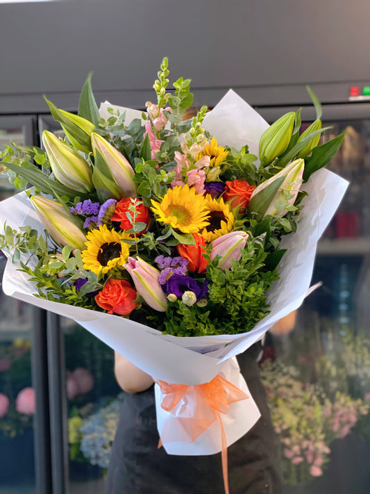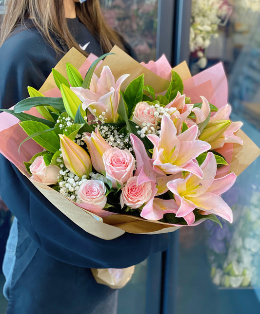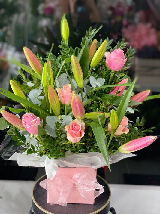 Oriental lily Bouquet with seasonal greens (lily very fresh, not guaranteed to be opened on the day )