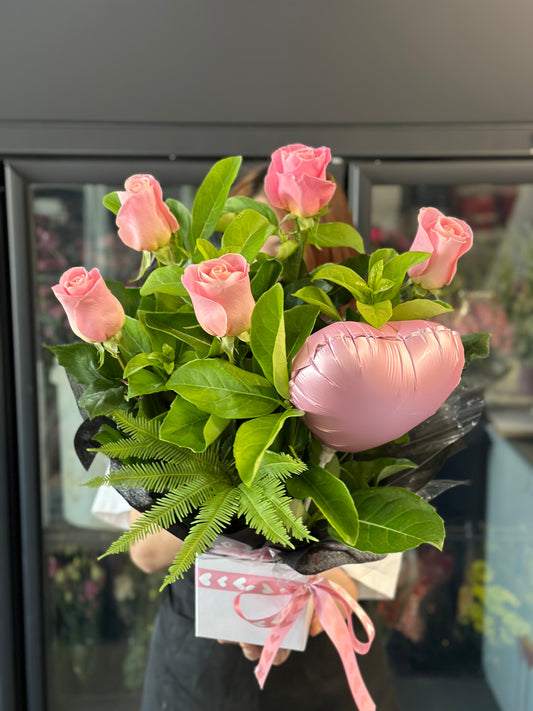 Pink dream -premium pink rose box with balloon
