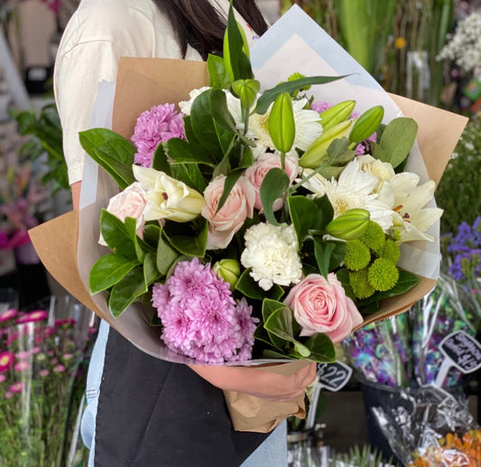 Oriental lily Bouquet with seasonal greens (lily very fresh, not guaranteed to be opened on the day )